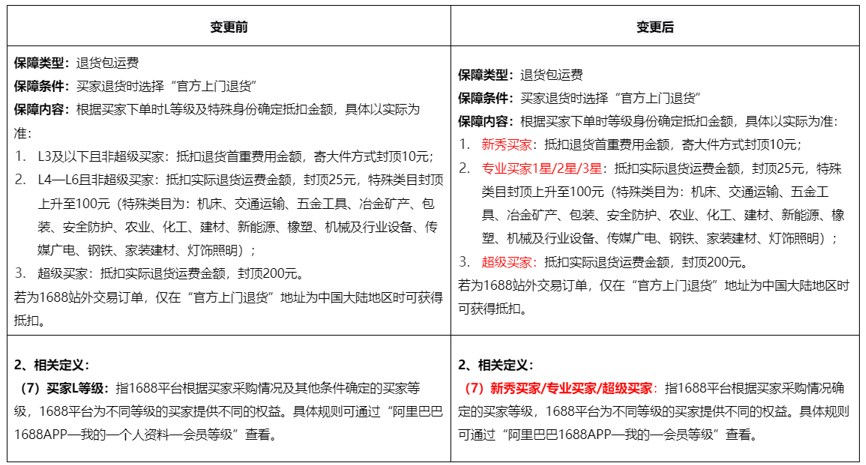 同时,不同等级的买家保障权益,也做了相对应的变化,我也给大家整理出来了,大家可以看这张图。